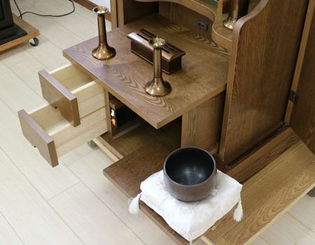 収納経机・収納リン台のついた家具調仏壇です。