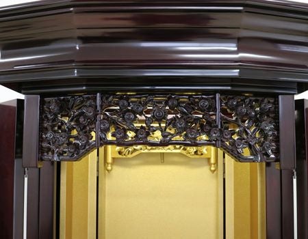 桜の彫刻が素敵な金剛堂の厨子型収納桜の木材で出来た中古仏壇です。