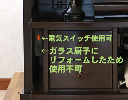 ・電気をつけるスイッチ部分に、以前使用していた電動のスイッチが一緒についておりますが、