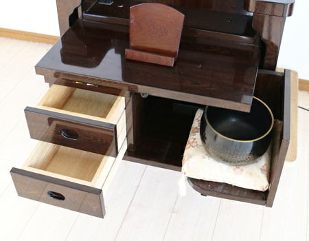 鉄刀木でできた厨子型収納机式の中古仏壇です。