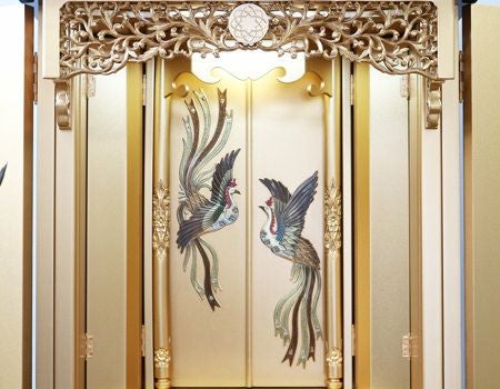 外扉の内側には、立体的な鳳凰が、ご本尊様を荘厳いたします。