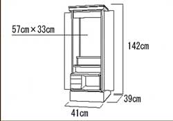 仏壇全体:高さ142cm x 幅41cm x 奥行き39cm