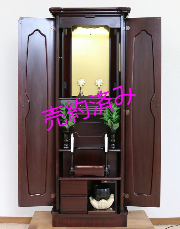 紫檀調の電動家具調仏壇です。中古仏壇となりますので、よく見ていただいてご購入下さい。