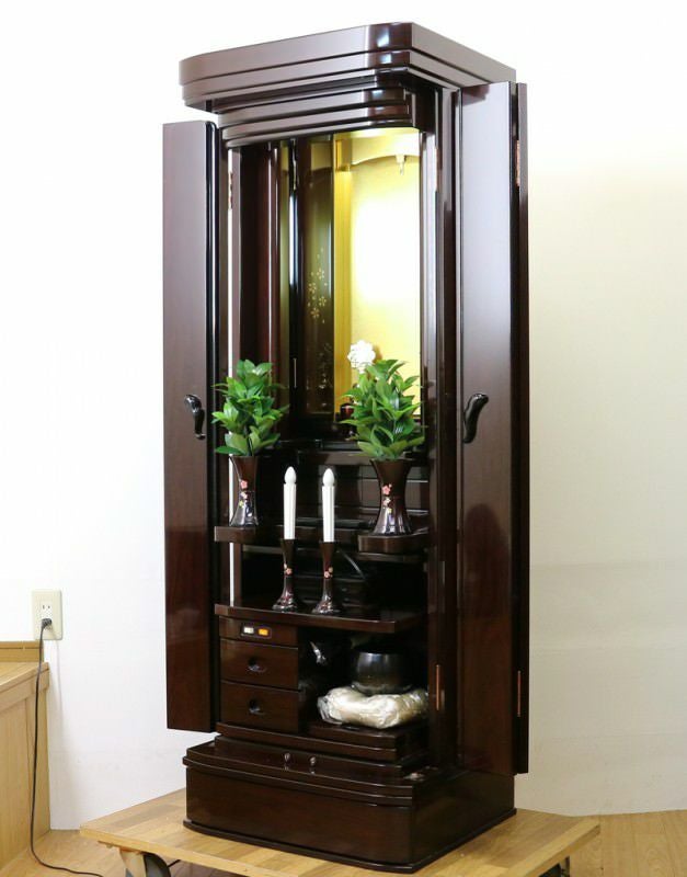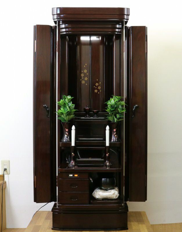 厨子扉にあるかわいらしい桜の花びらの蒔絵が特徴のお仏壇です。リビング・洋室・一人暮らしに最適です。