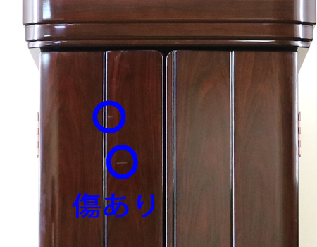 仏壇上部外扉に傷が2か所ございます。