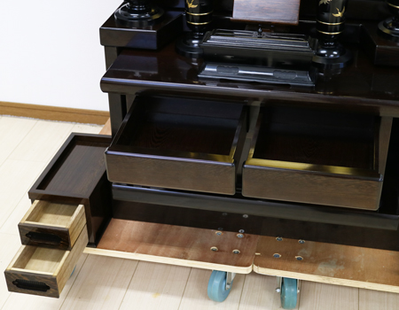 引き出しが収納経机に2か所、線香箱に2か所ございます。