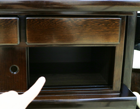 収納経机に引き戸の収納スペースがございます。