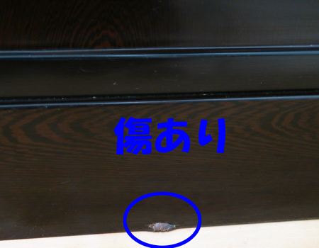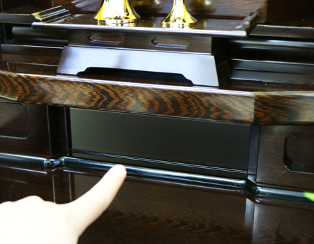 お仏壇側面最下部に上記写真の傷がございます。