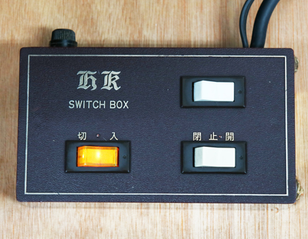 上記写真のスイッチボックスで電源の入り切り、電動開閉機の開閉を