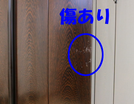 お仏壇正面右側、外扉に上記写真の傷がございます。