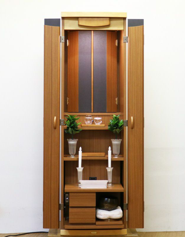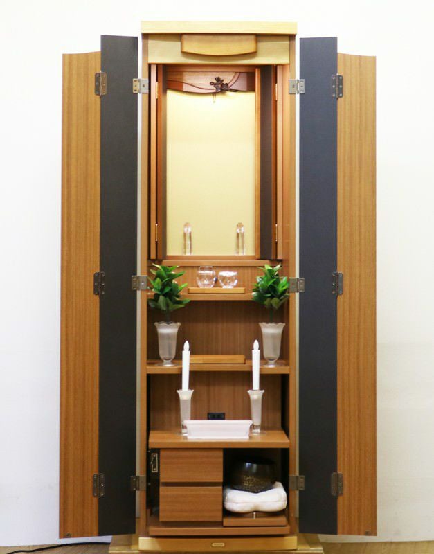 今までのお仏壇のデザインではなかった、オシャレな雰囲気漂うデザインに仕上がっております。暖かみあふれる明るい印象をお部屋にプラスしてくれます。