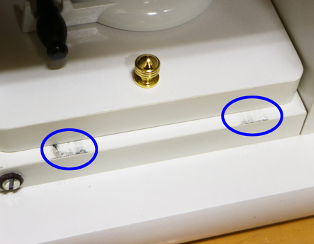 上記写真の青丸の箇所(収納式リン台)に黒い汚れがございます