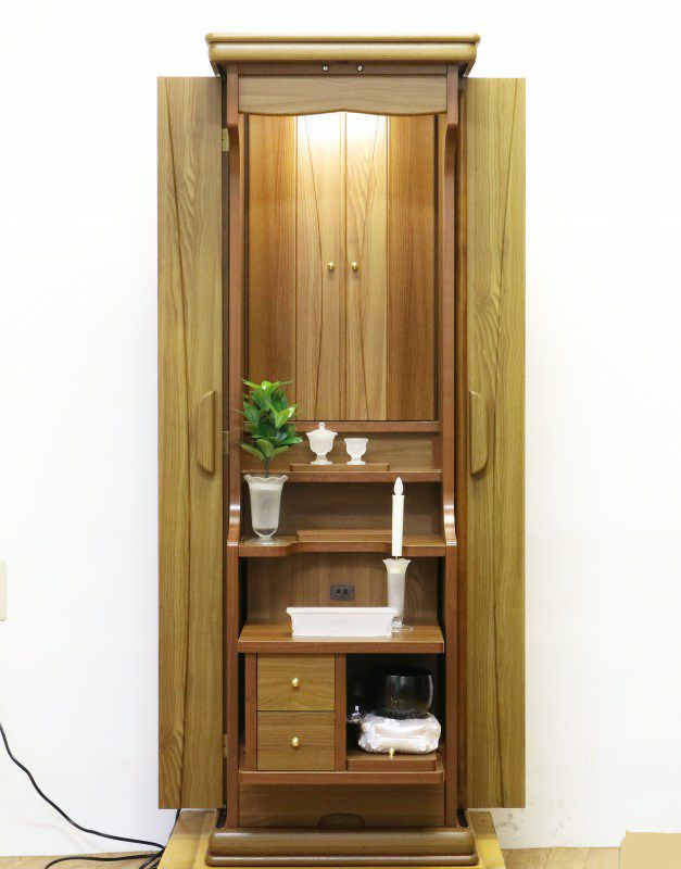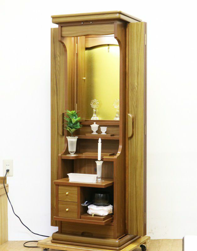 大戸が押し込み式のため押し込むと斜めからもご本尊様を拝すことができます。