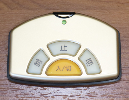 上記写真のリモコンで電源の入り切り、厨子扉の開閉を行います。
