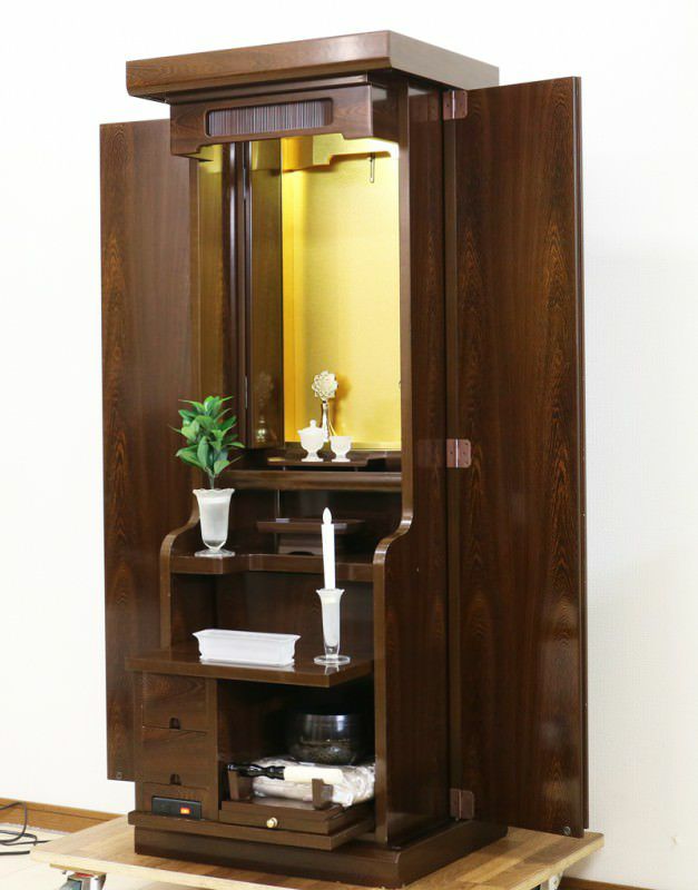 内部には蛍光灯照明も付属していますのでご本尊様を明るく照らしてくれます。