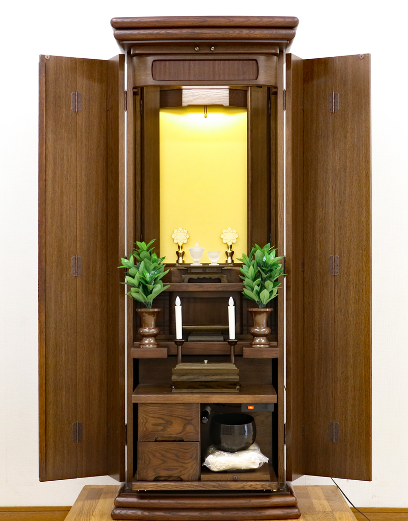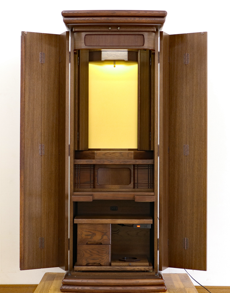 内部には蛍光灯照明も付属していますのでご本尊様を明るく照らしてくれます。