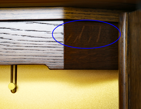 厨子上部欄間の部分、向かって右側の木目が、変わっております。