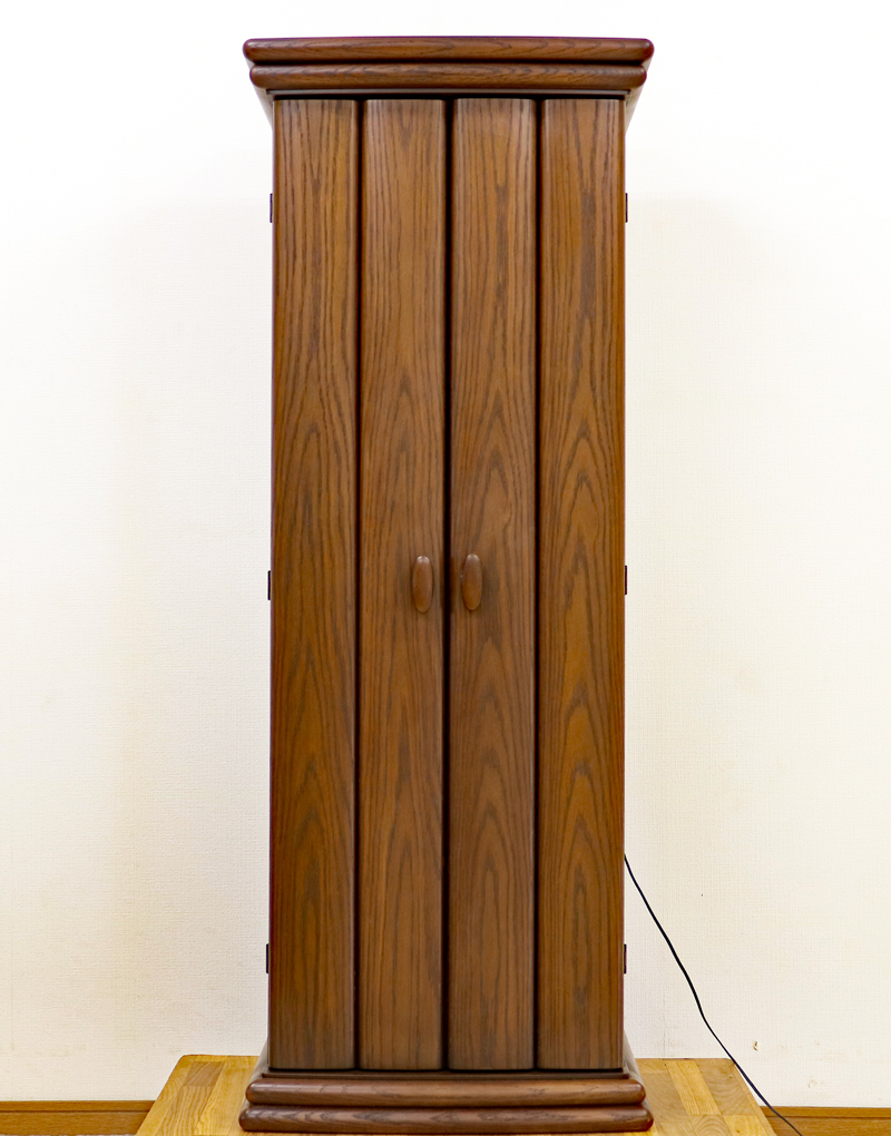 中古仏壇739 です。しっかりとした杢で仕上げられ中型家具調電動です。三方開きの扉なので会場拠点にも最適にご使用いただけます。 和室・洋室・リビングダイニングにも最適です。