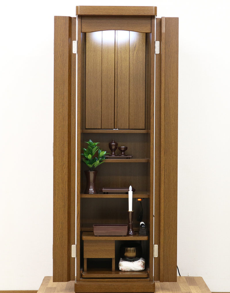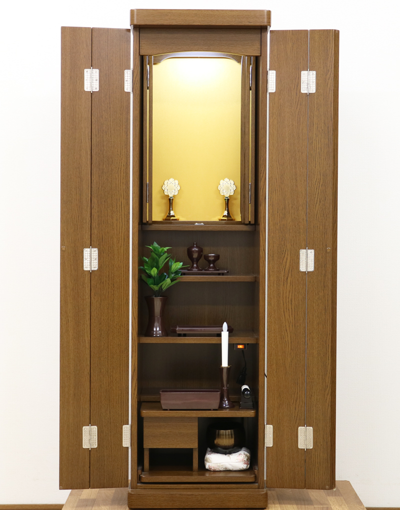 手動式の厨子扉となっておりますので、機械の故障が無く安心して使用することができます。仏壇全体にウレタン塗装が施されているため耐久性に優れております。