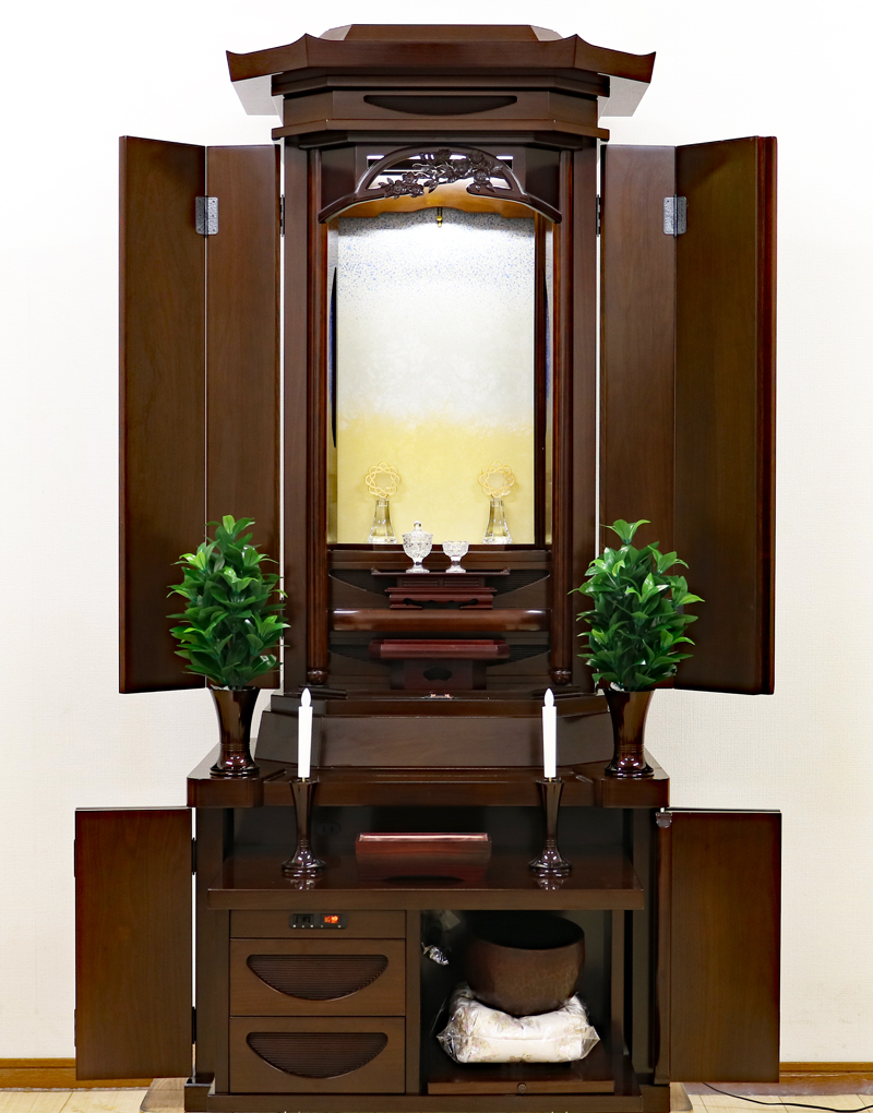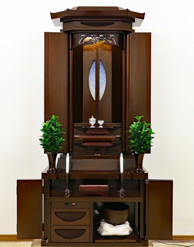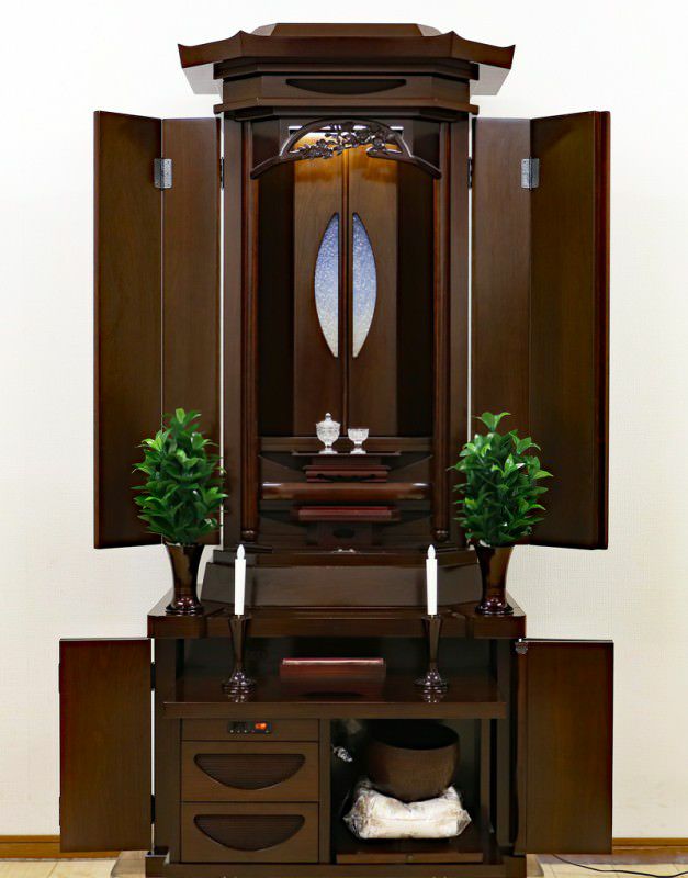金剛堂さんの厨子型収納仏壇です。お厨子扉には涼しげなガラスがはめ込まれております。
