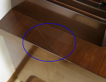 下台(向かって右側面)の天板部分に上記お写真の傷がございます。