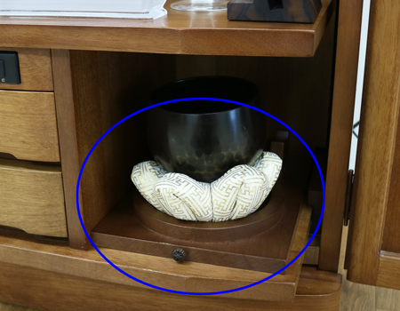 中古仏具:天目・三宝・リンボウ・リン・リン布団 リン棒台