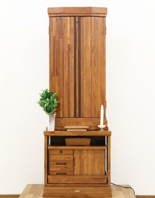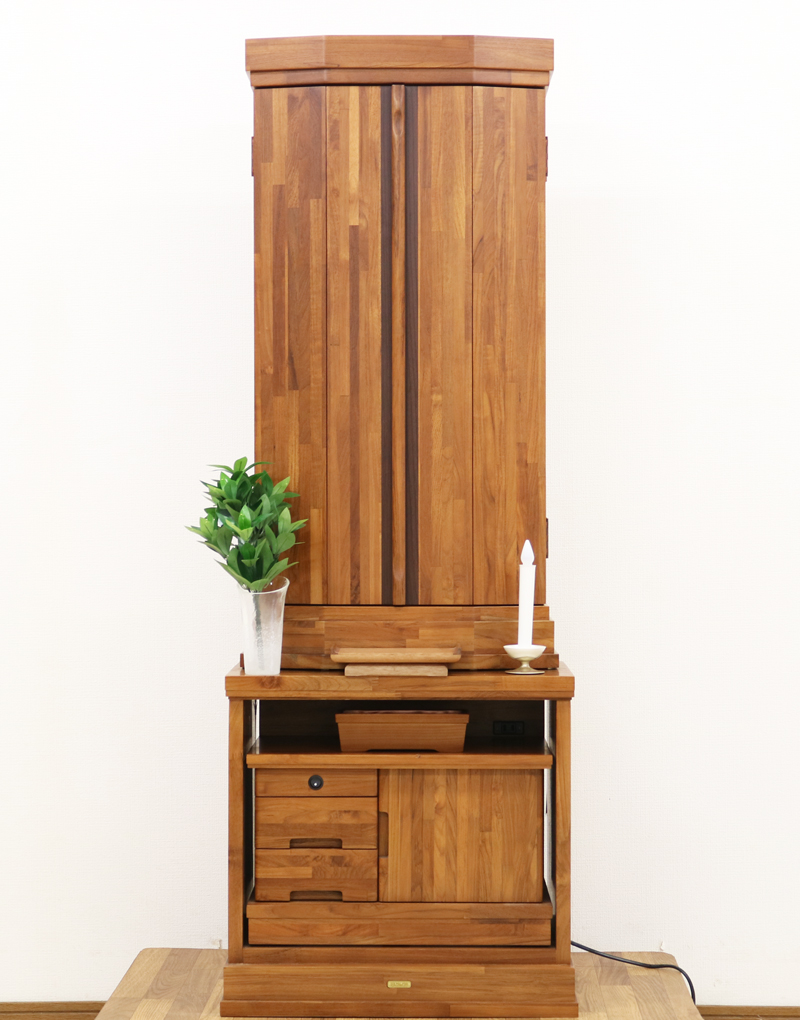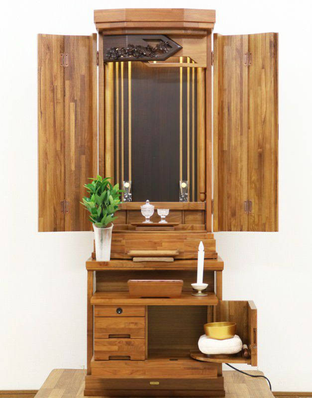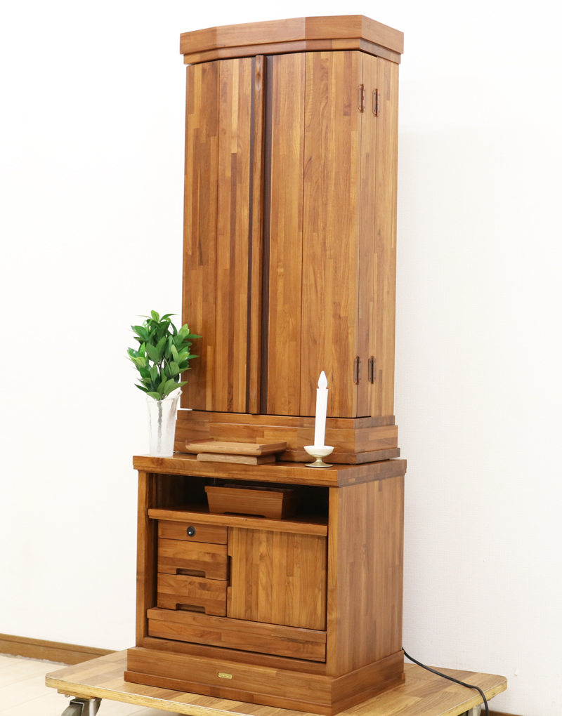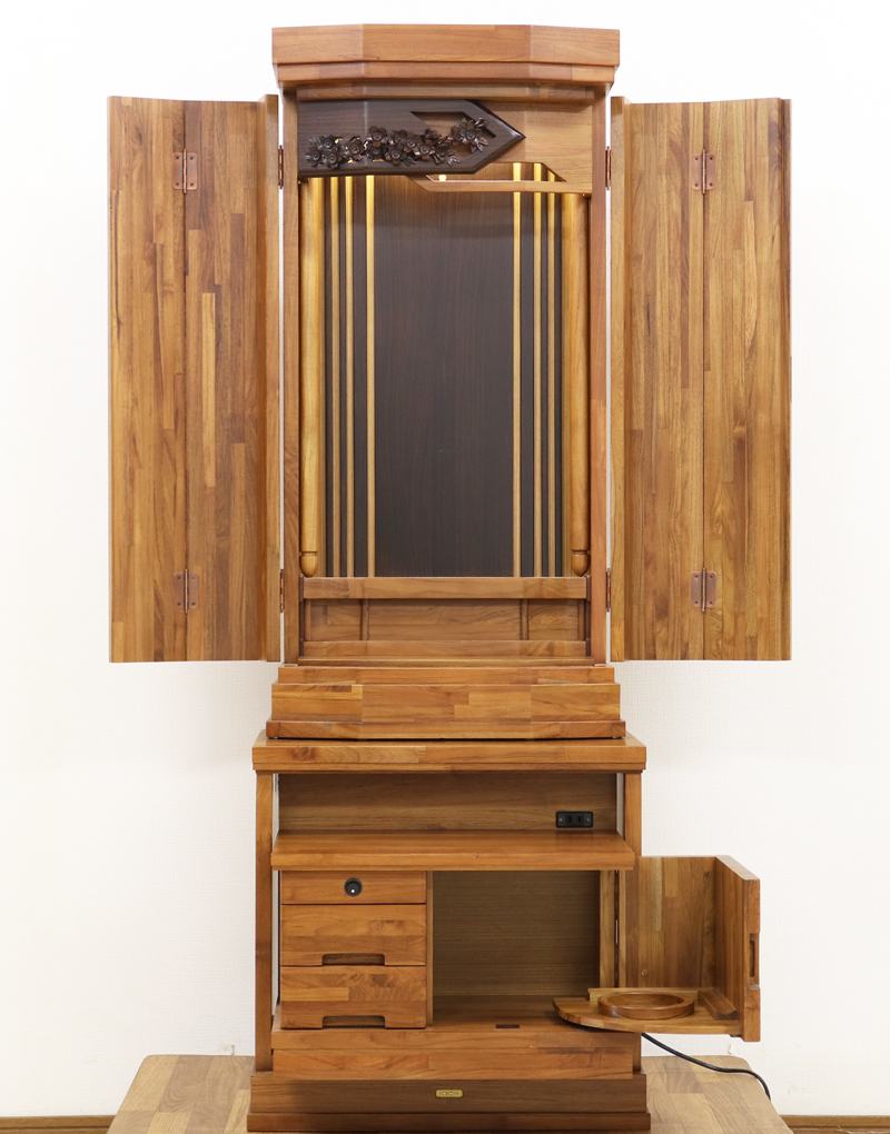 手動式の厨子扉となっておりますので、機械の故障が無く安心して使用することができます。材質はチーク材無垢をふんだんに使用して作成されております。