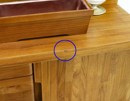 経机側面に集成材なのでこのようにずれる可能性がございます。