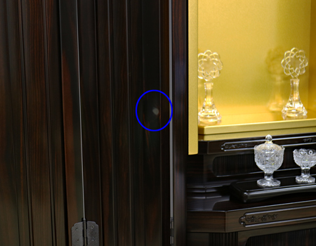 上記写真の青丸(大戸の内側)に白ボケがございます。