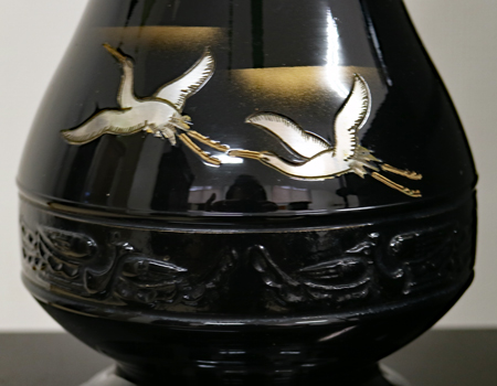 鶴の彫金が入った灯立、花立が付属いたしします。