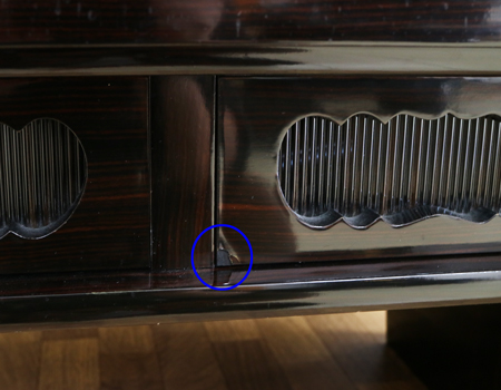 上記お写真の青丸の箇所(経机引き出し)に傷がございます。