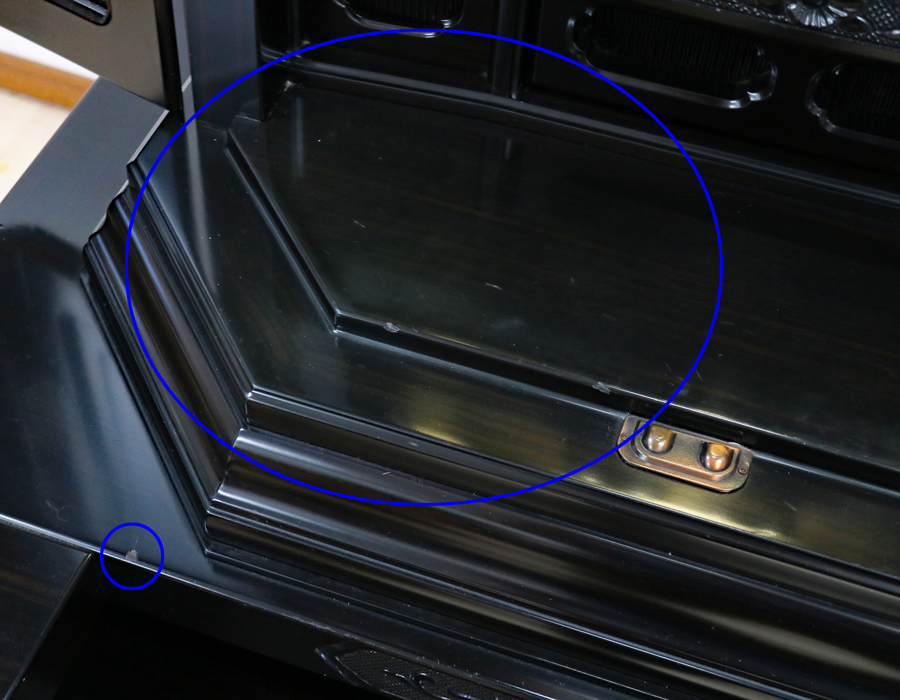仏器茶器を置く箇所の横に色抜けしている部分がございます。