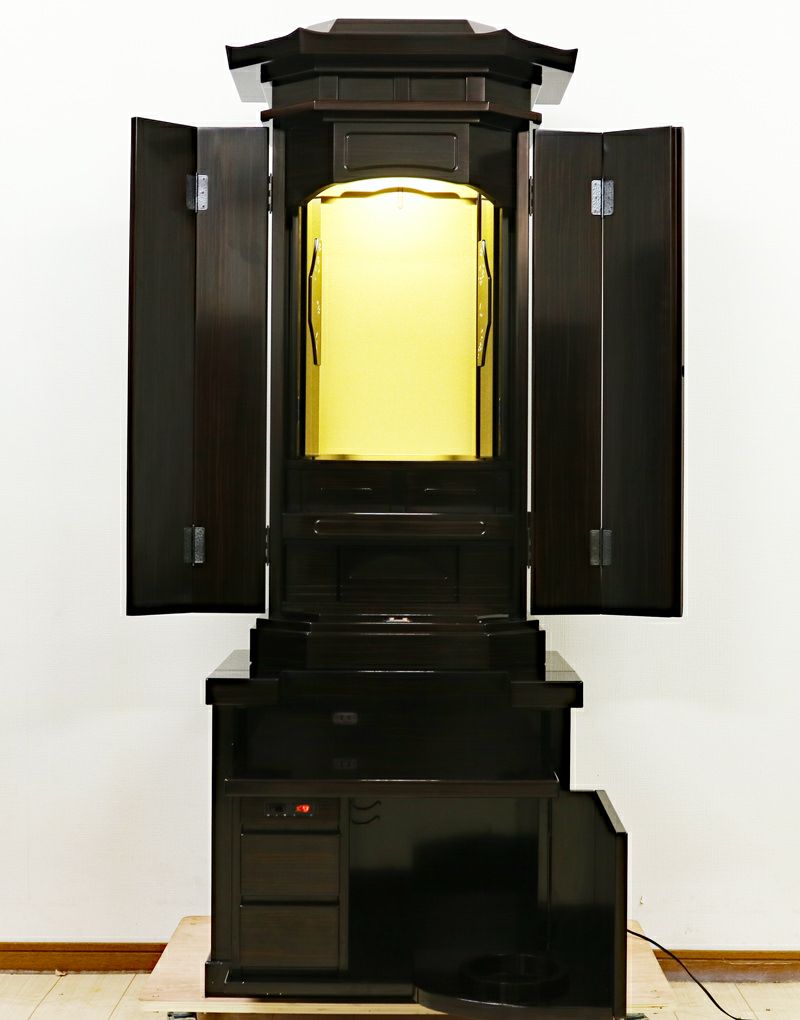 内部には蛍光灯照明も付属していますのでご本尊様を明るく照らしてくれます。