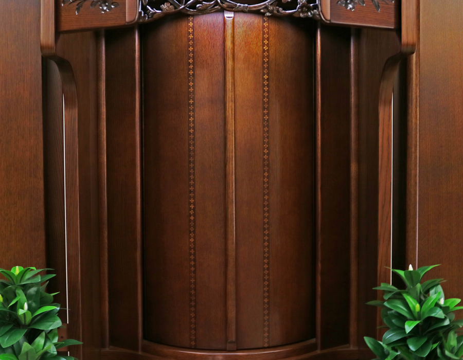 押し込み式大戸ですので、押し込むことで斜めからもご本尊様を拝すことができます。