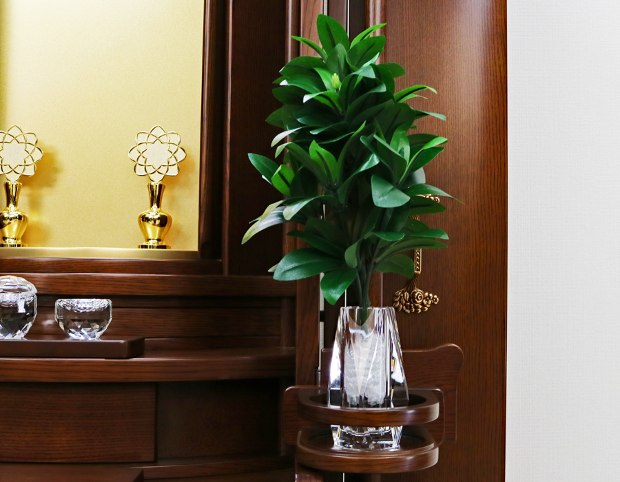 厨子扉にはイタリア製の象眼を施し、柔らかい印象を演出いたします。
