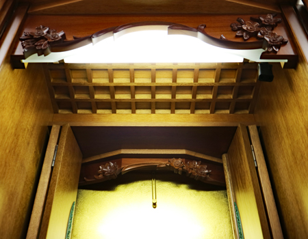 内部には蛍光灯照明も付属していますのでご本尊様を明るく照らしてくれます。