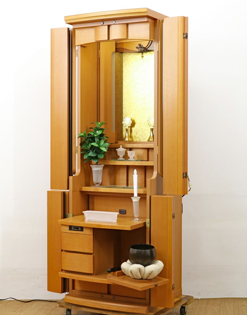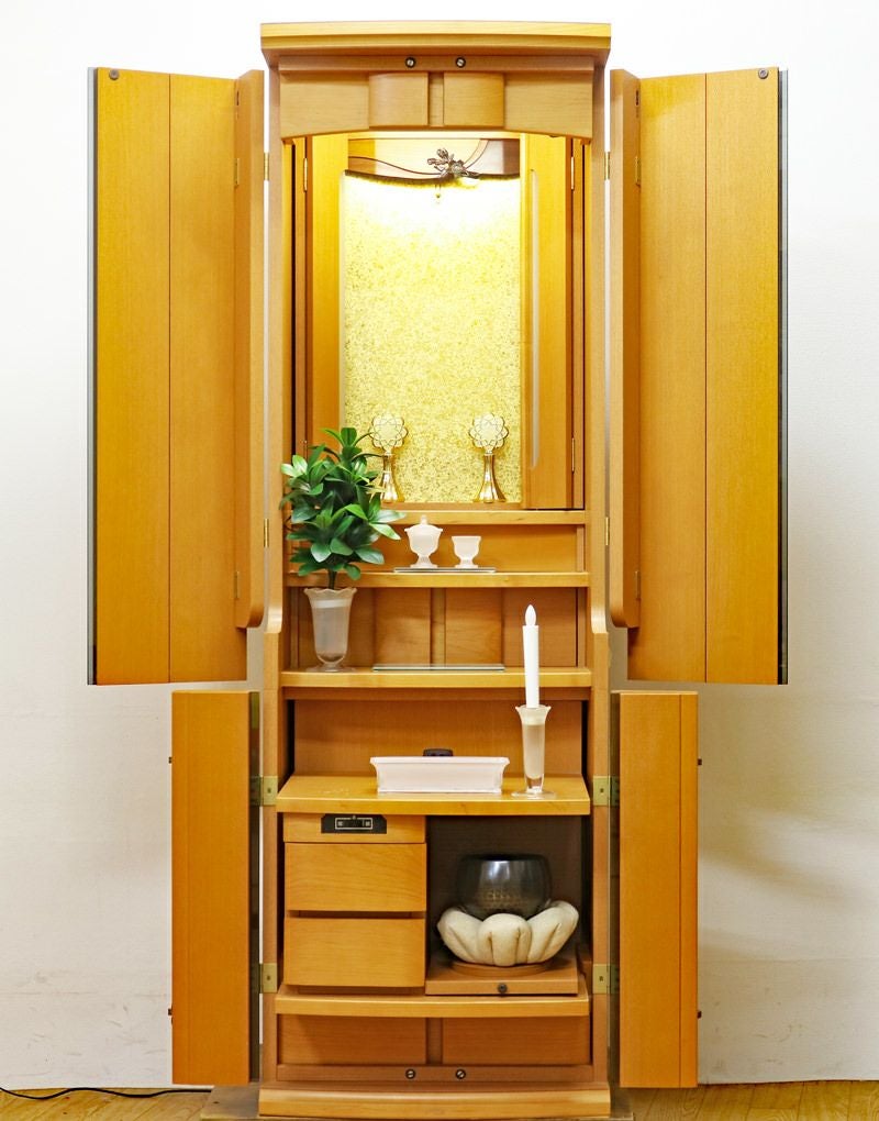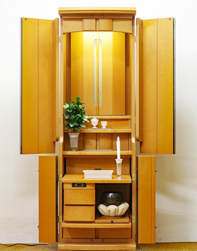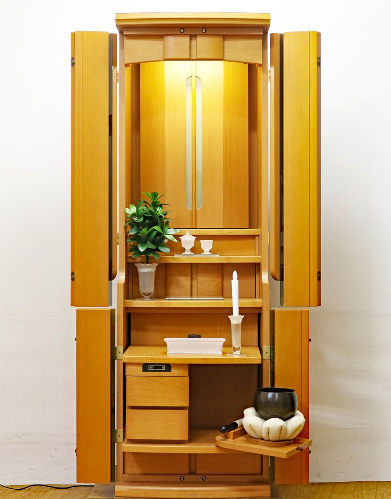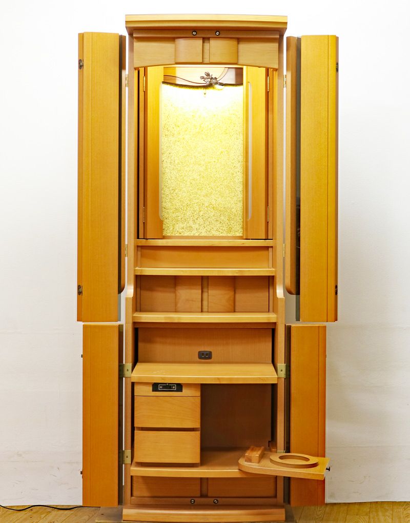 内部には蛍光灯照明も付属していますのでご本尊様を明るく照らしてくれます。