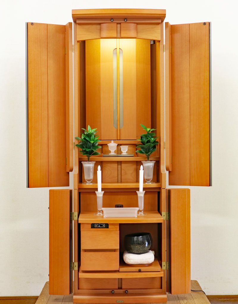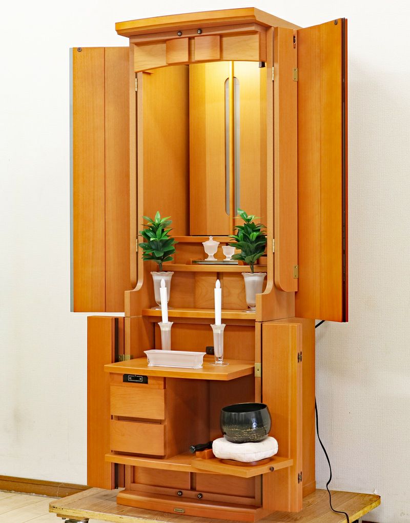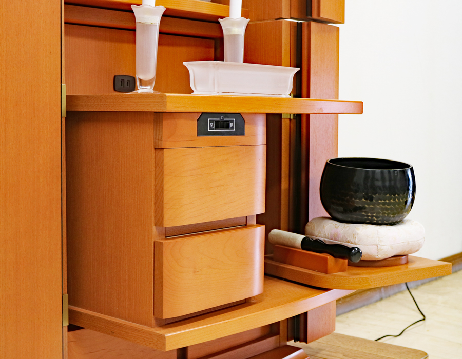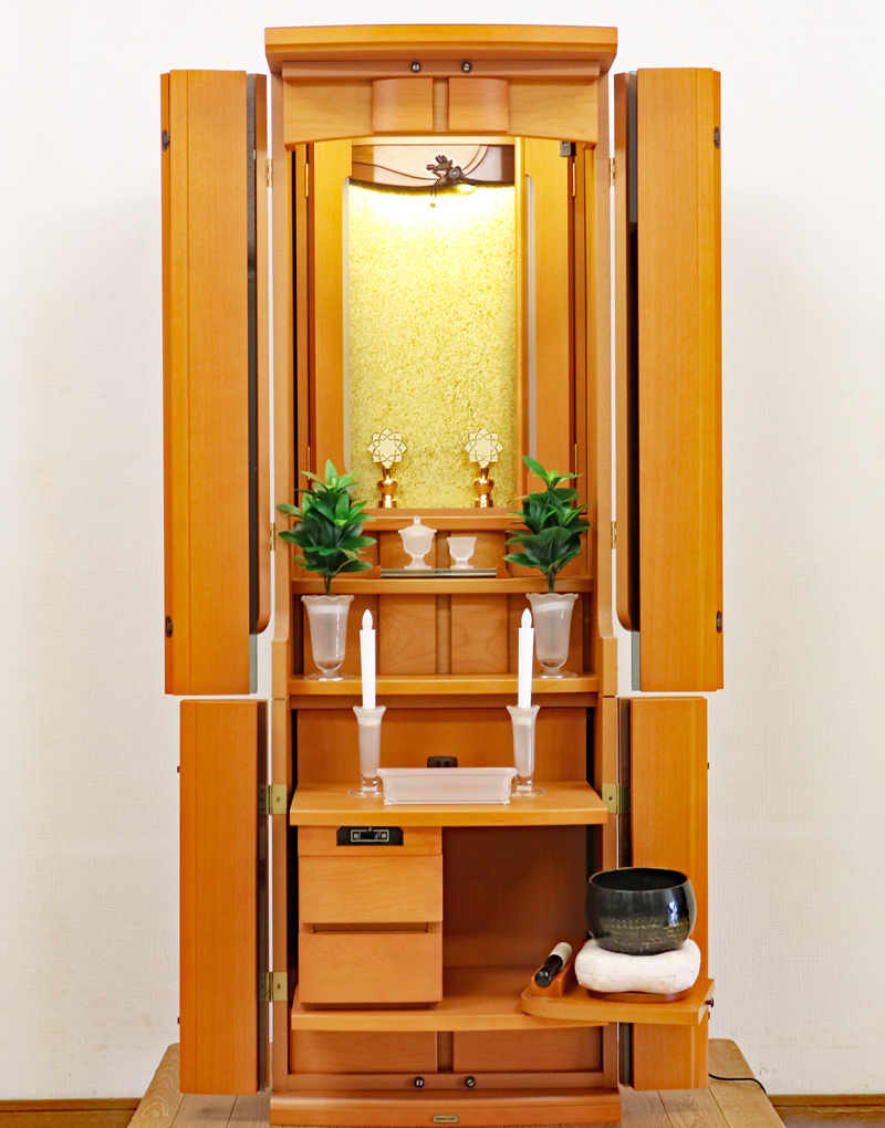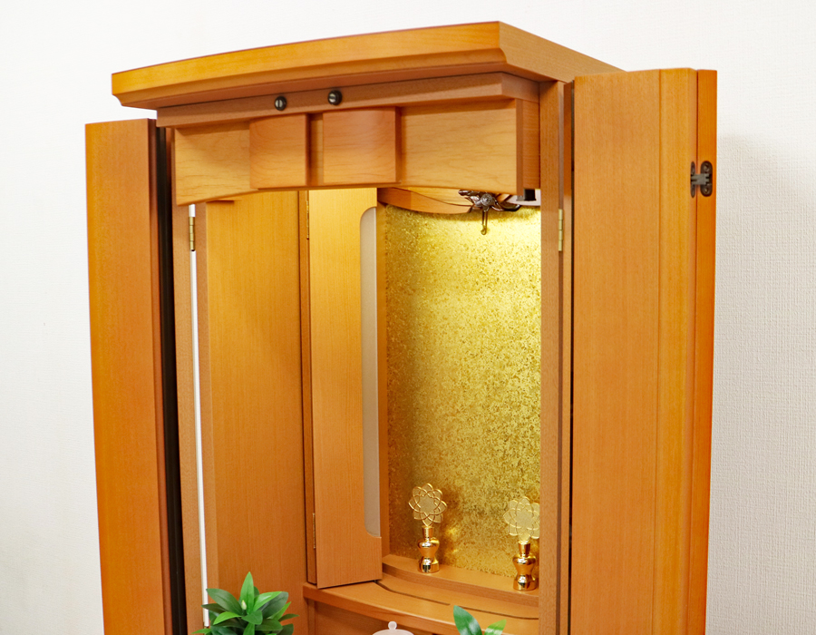 内部には蛍光灯照明も付属していますのでご本尊様を明るく照らしてくれます。