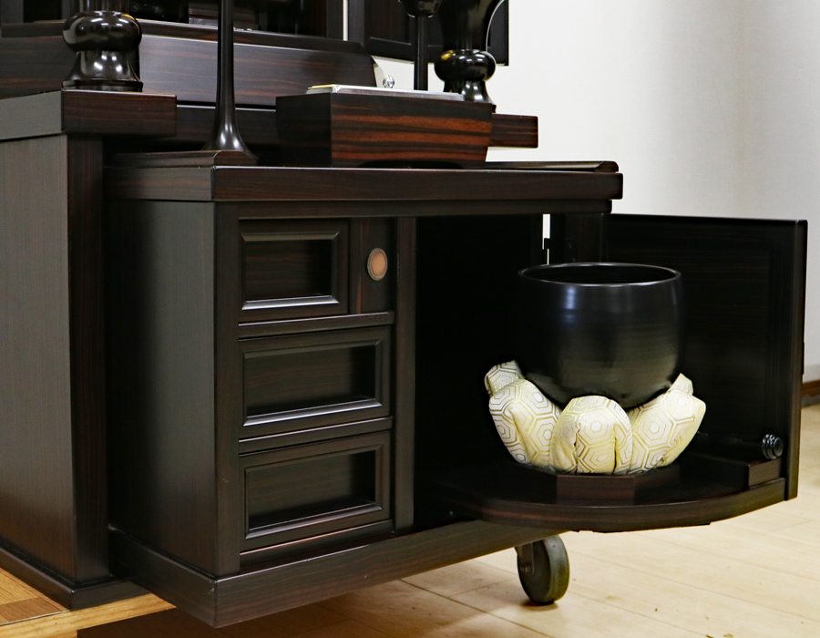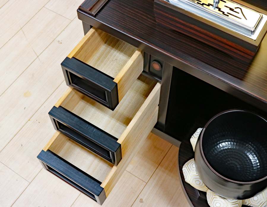 引き出し横にあるスイッチをタッチすると、厨子扉の開閉を行うことができます。