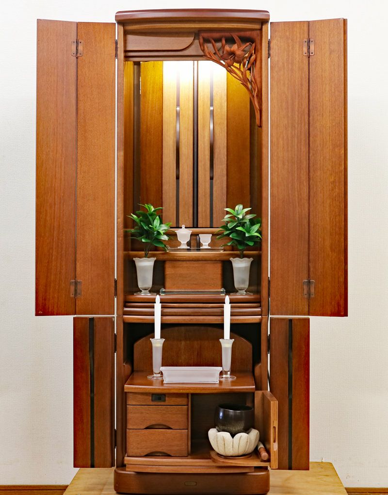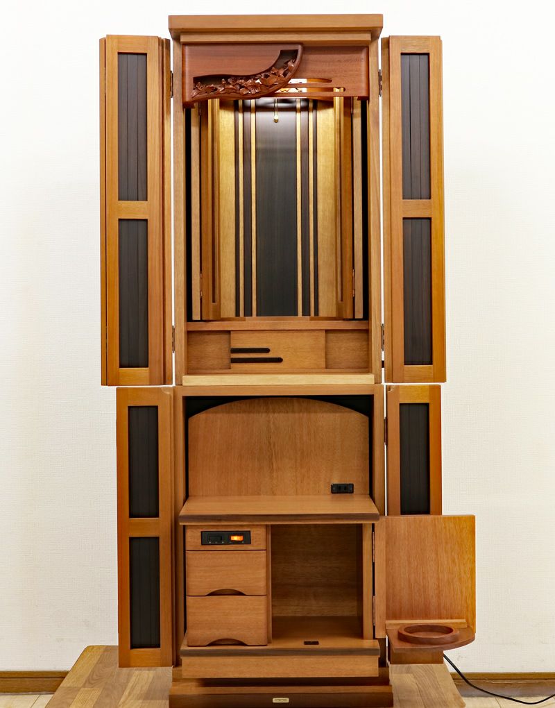 内部には蛍光灯照明も付属していますのでご本尊様を明るく照らしてくれます。