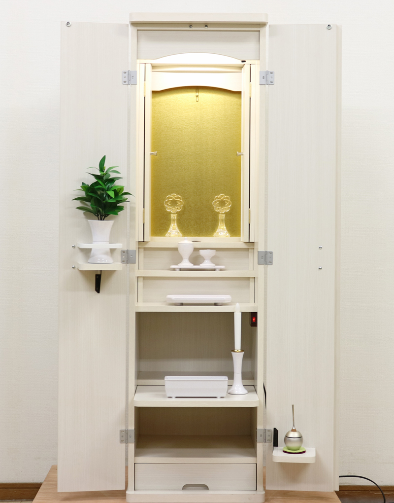 内部には蛍光灯照明も付属していますのでご本尊様を明るく照らしてくれます。