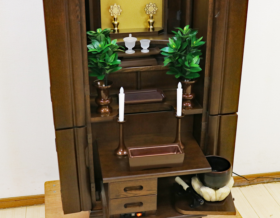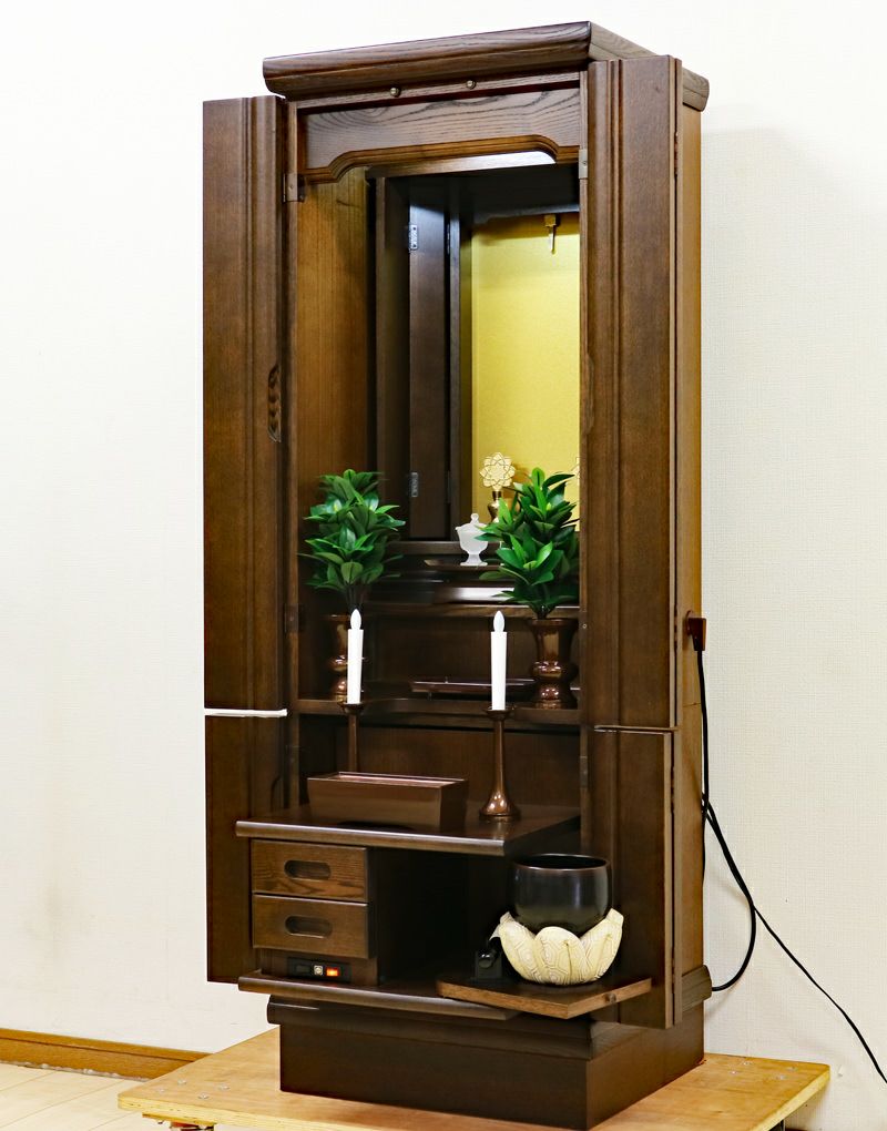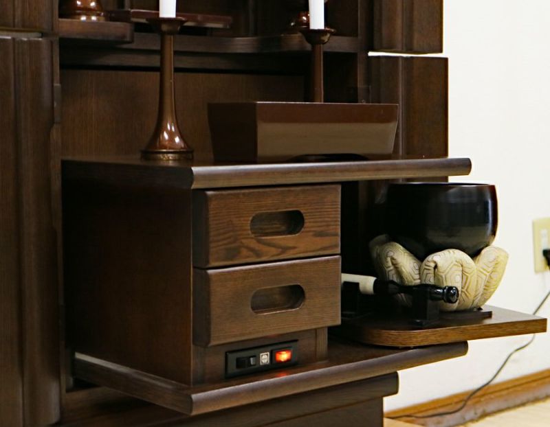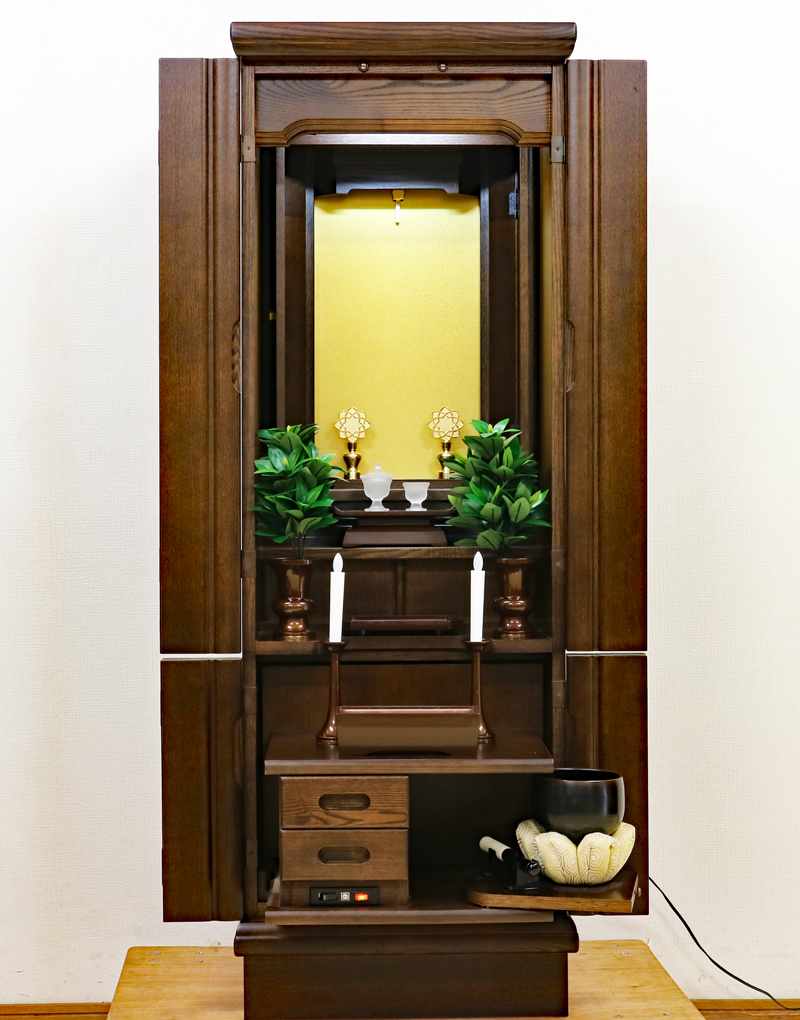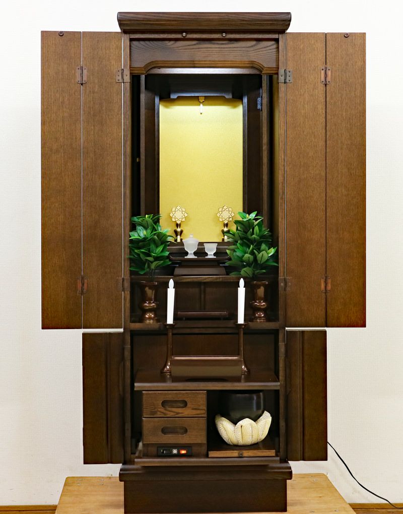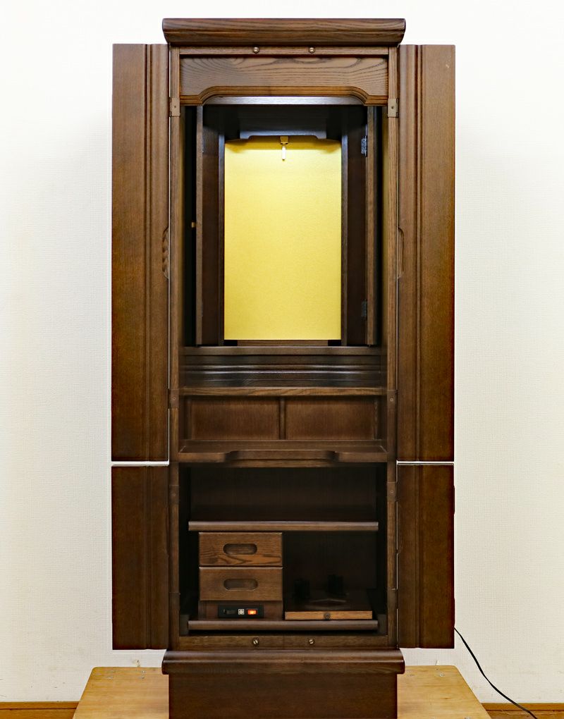 内部には蛍光灯照明も付属していますのでご本尊様を明るく照らしてくれます。