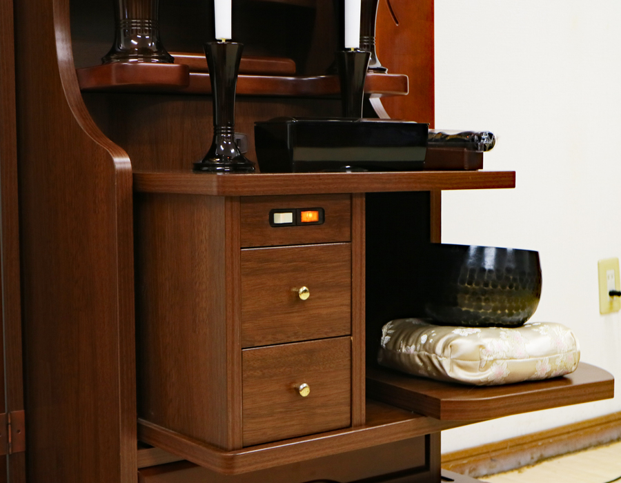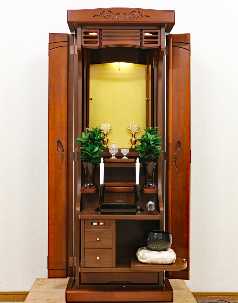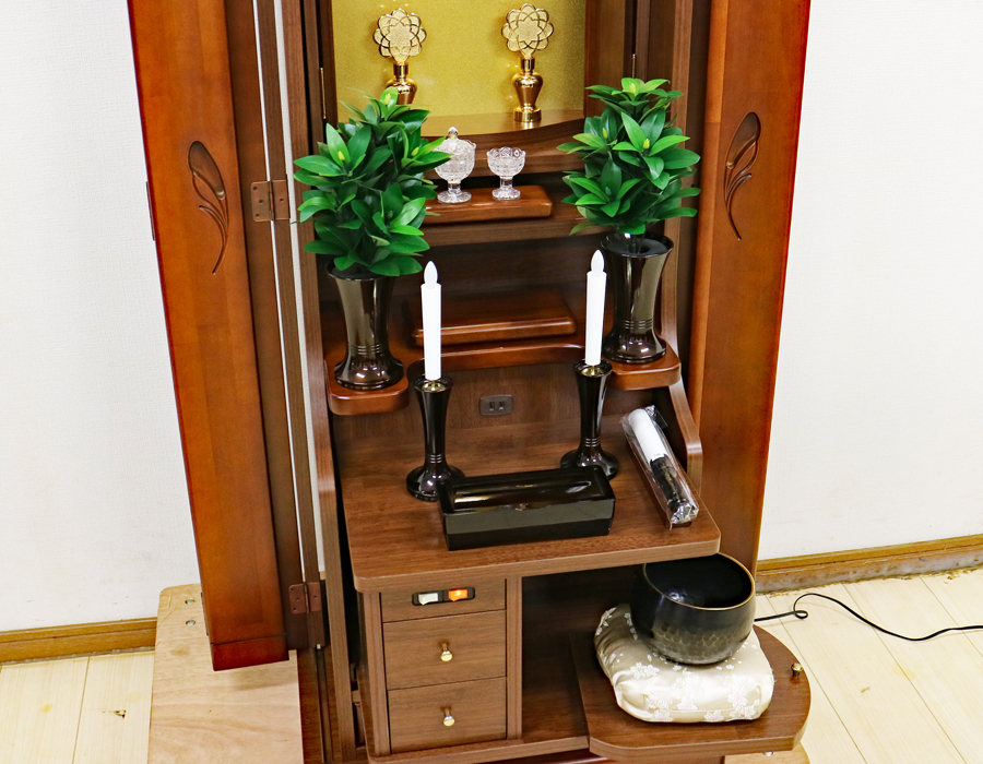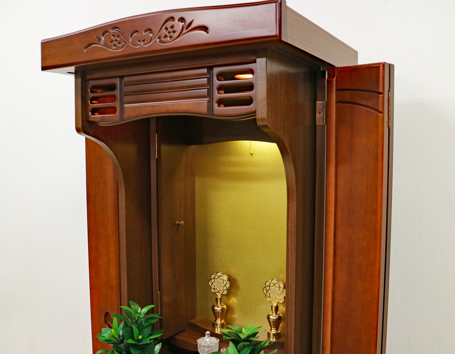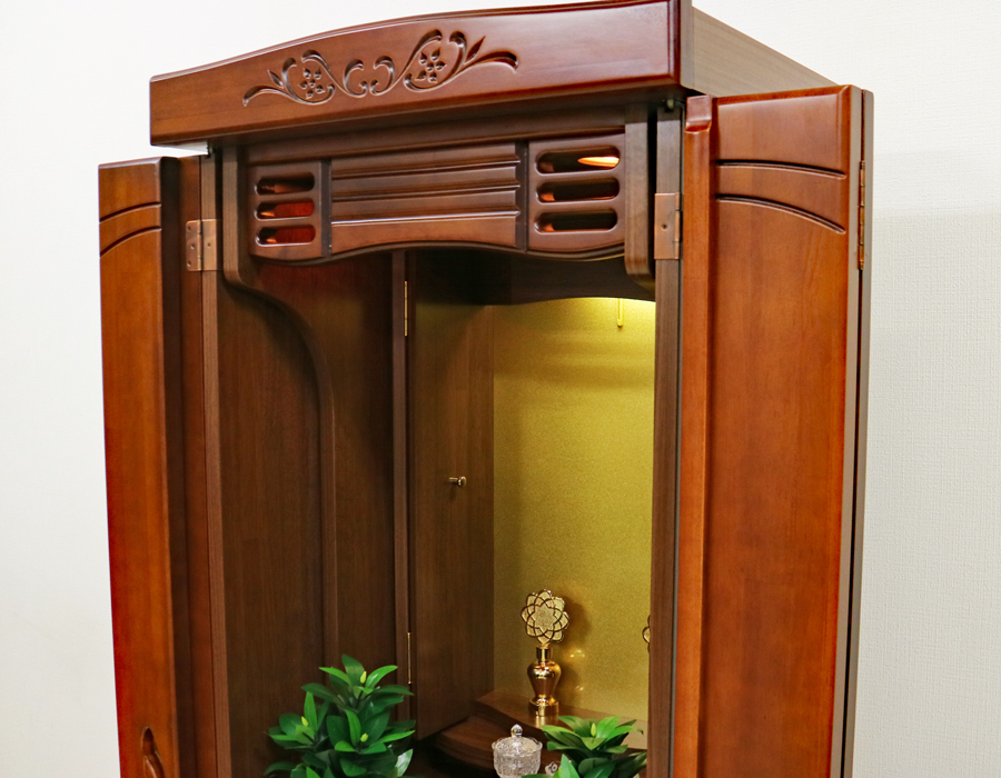 内部には蛍光灯照明も付属していますのでご本尊様を明るく照らしてくれます。