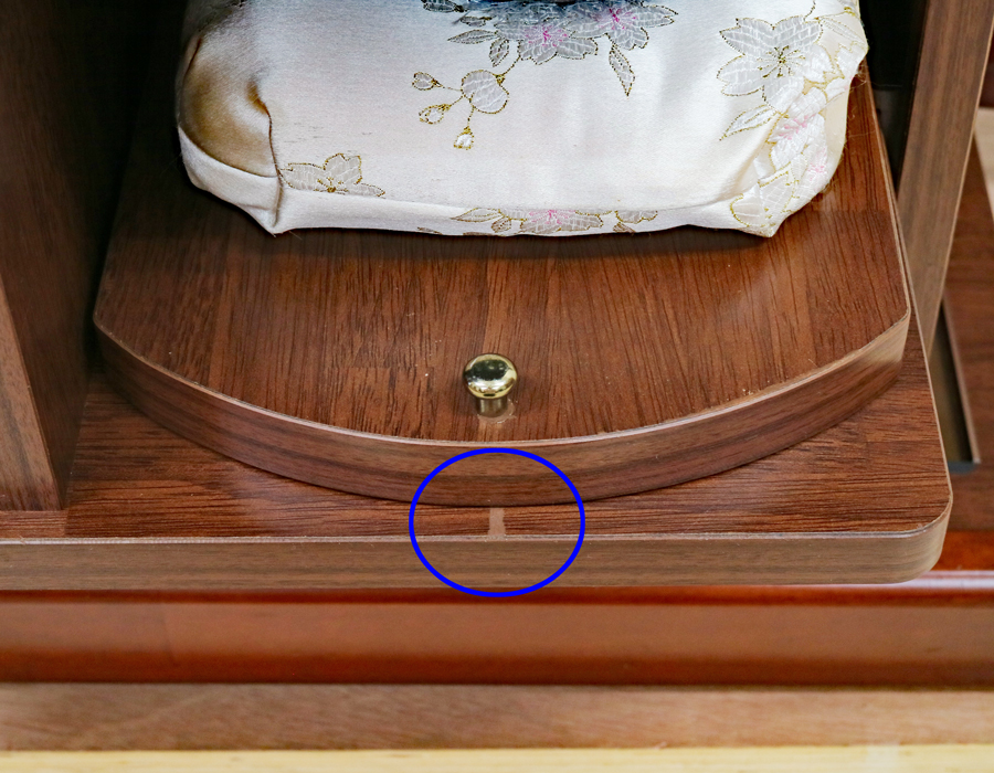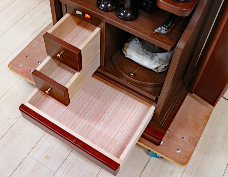 押し込み式大戸ですので、押し込むことで斜めからもご本尊様を拝すことができます。