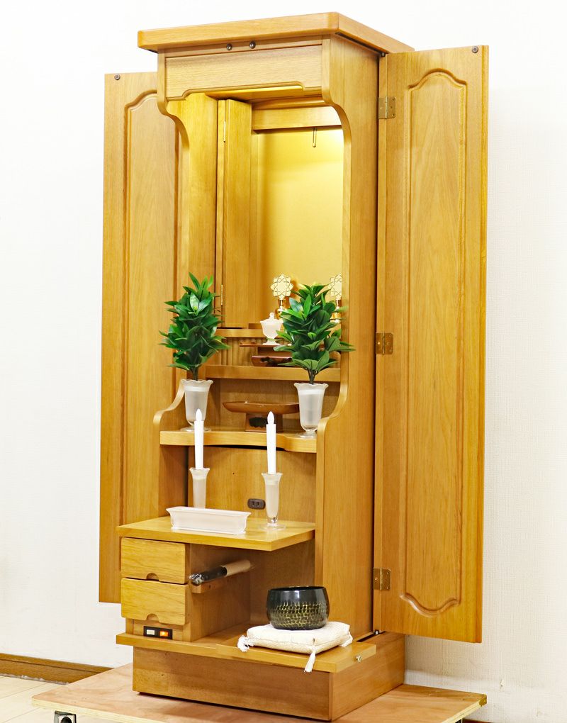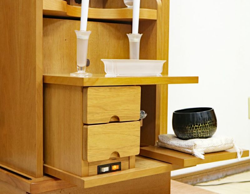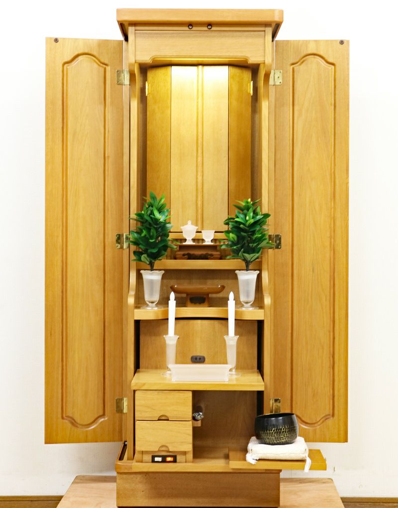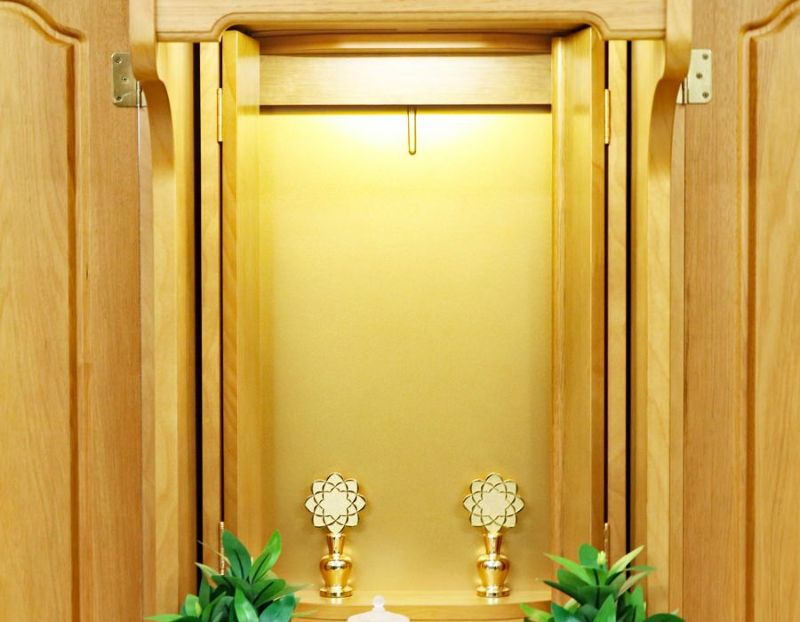 内部には蛍光灯照明も付属していますのでご本尊様を明るく照らしてくれます。