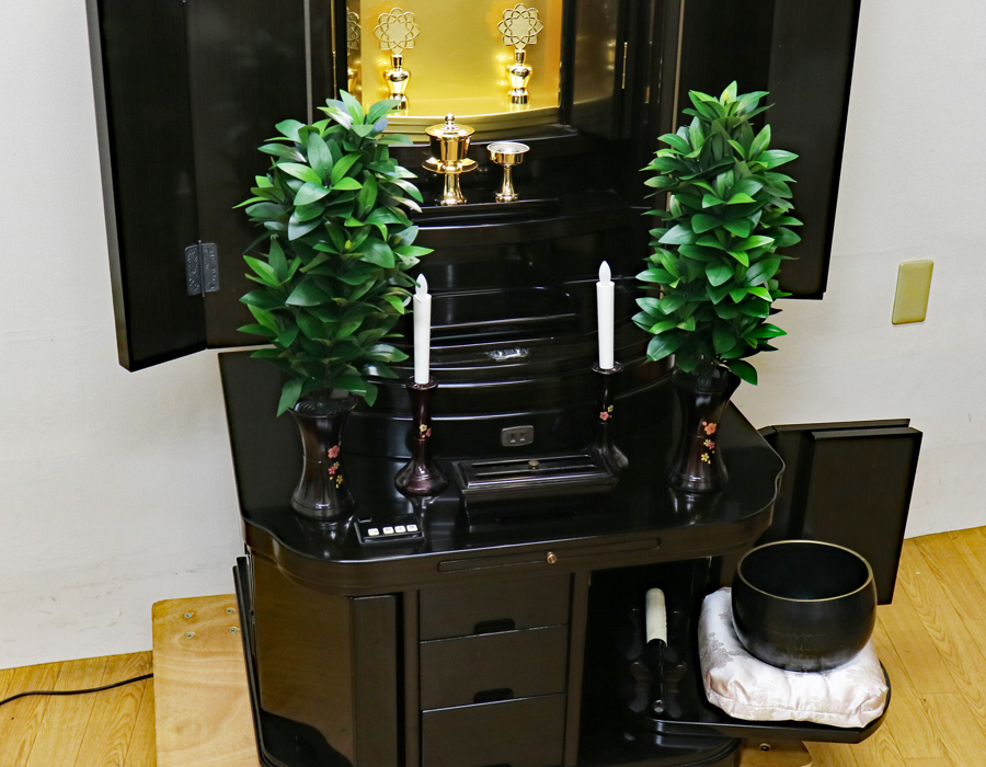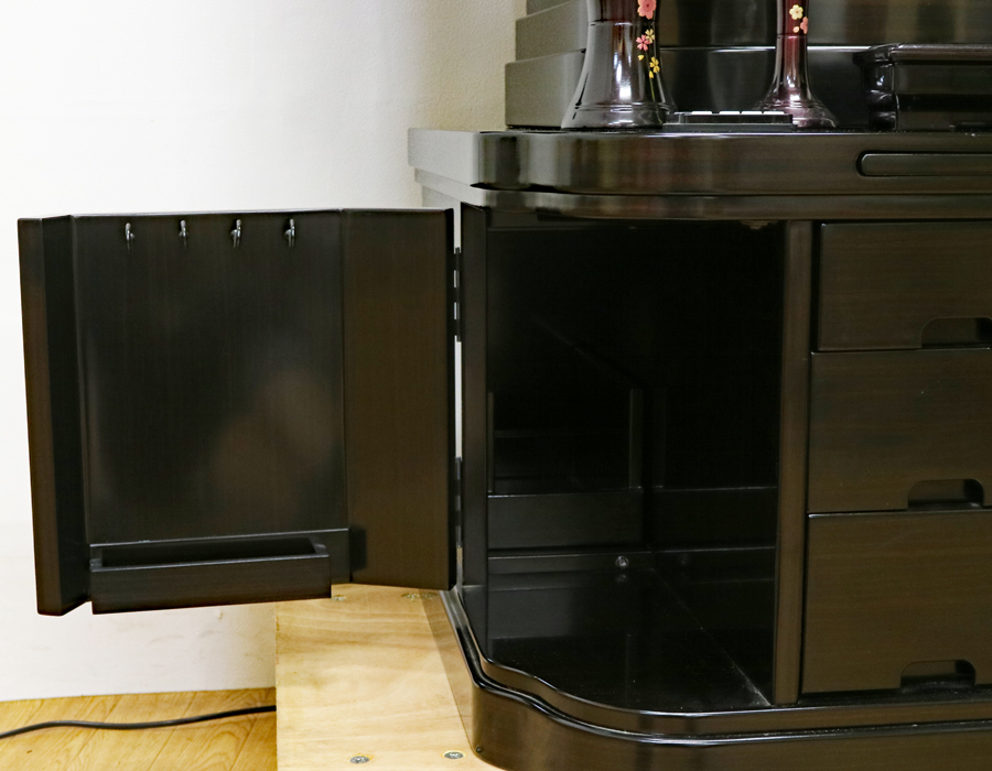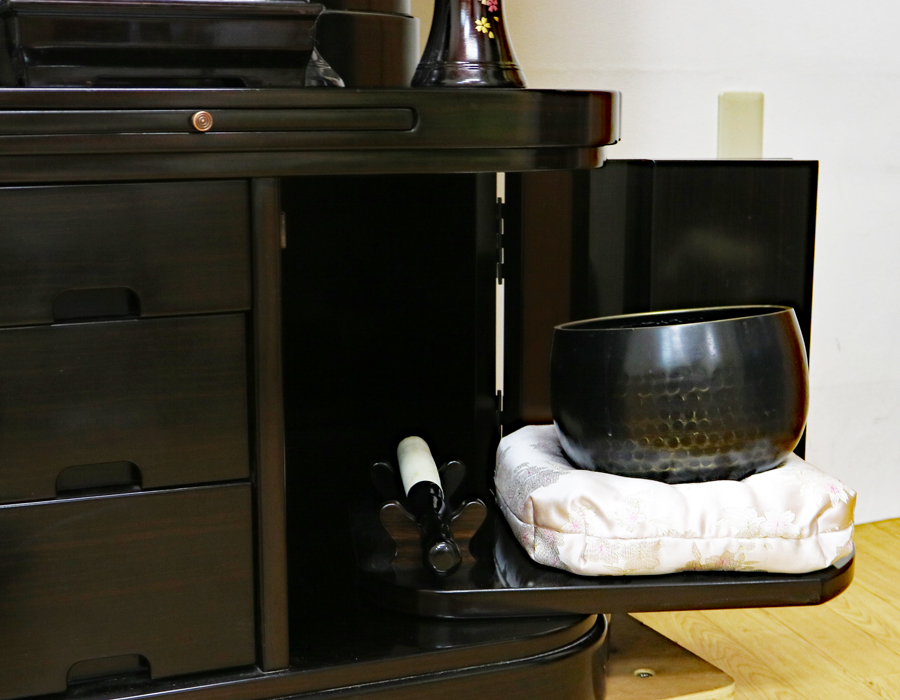 引き出しの横に、専用念珠かけと蓋つきの隠し収納がございます。