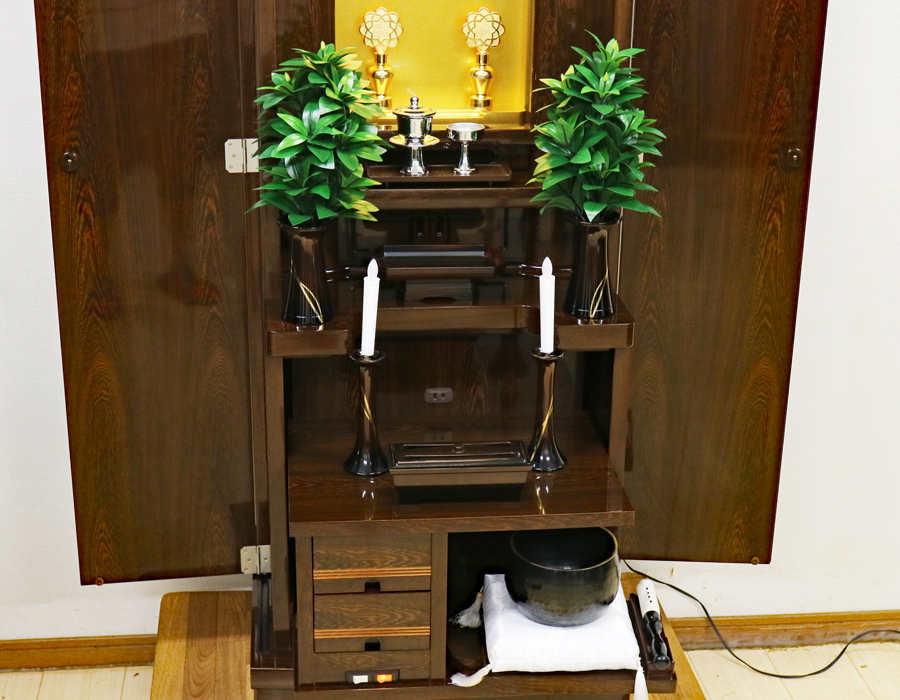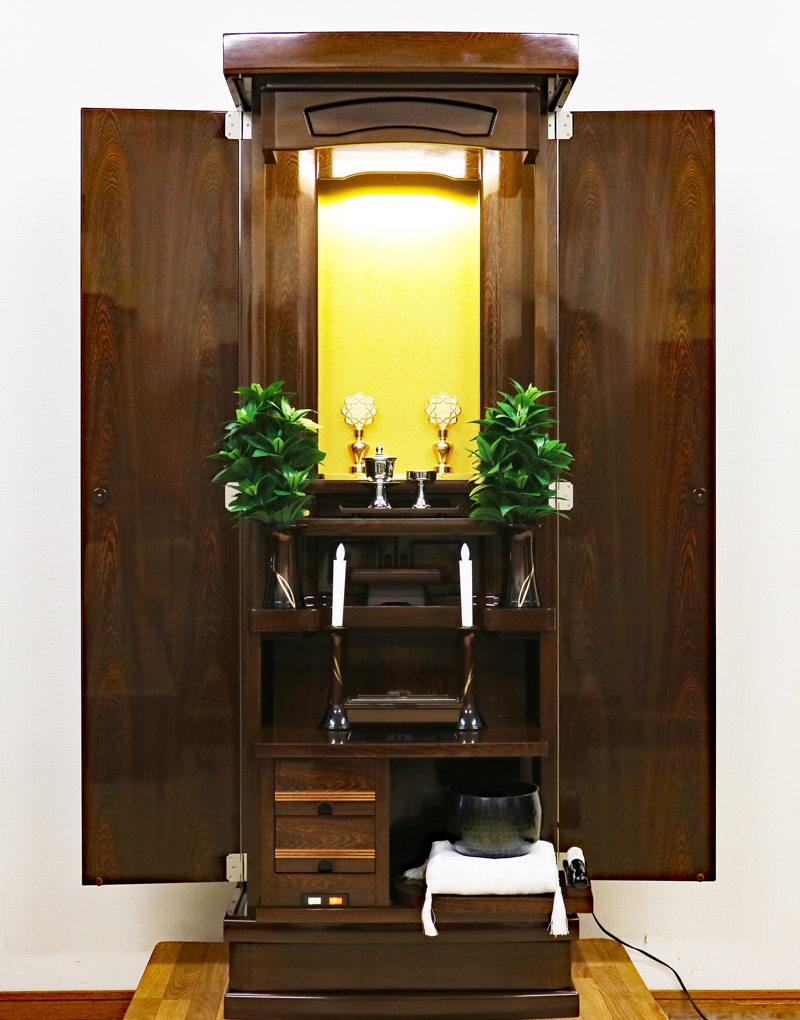 内部には蛍光灯照明も付属していますのでご本尊様を明るく照らしてくれます。