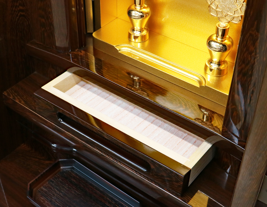 押し込み式大戸ですので、押し込むことで斜めからもご本尊様を拝すことができます。