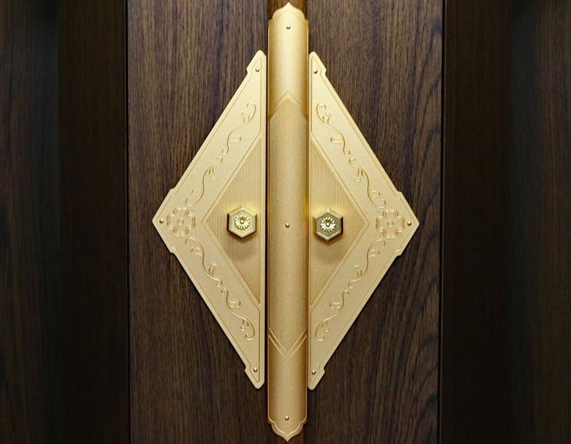 厨子扉に、お仏壇を荘厳する金具がデザインされております。