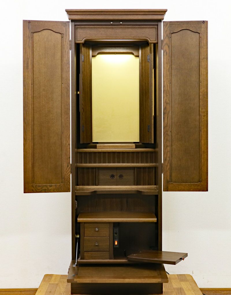 内部には蛍光灯照明も付属していますのでご本尊様を明るく照らしてくれます。